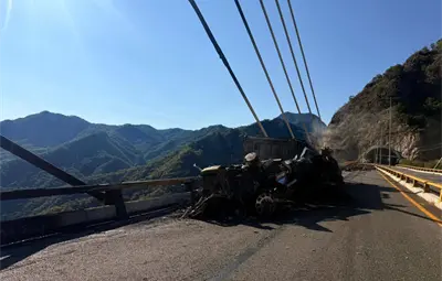 Según se informó, esta volcadura fue reportada el domingo, siniestro que obligó al cierre de uno de los cuerpos de circulación mientras personal especializado trabajó primero para sofocar las llamas y después para revisar que el puente no presentara daños que comprometieran su estabilidad.