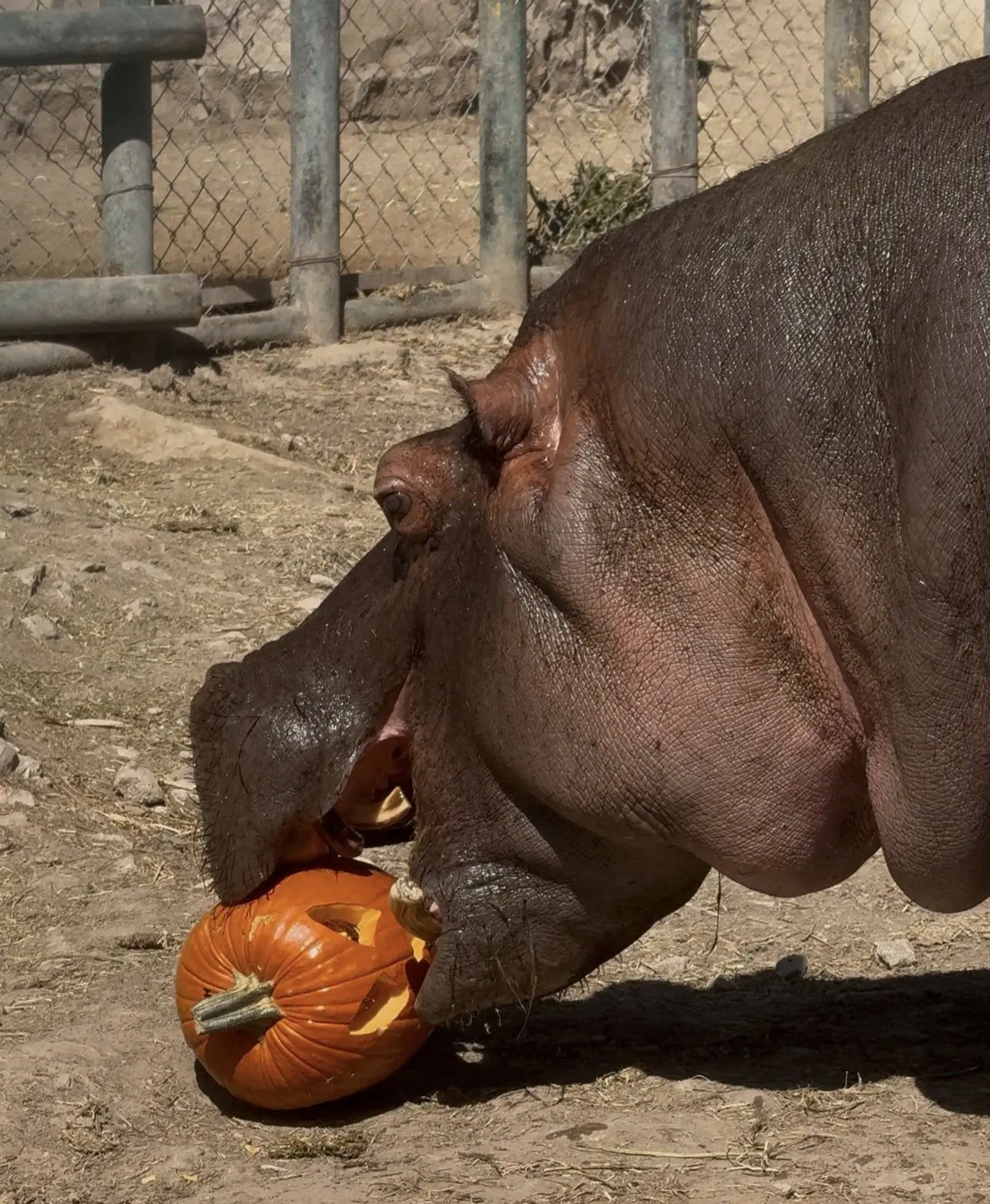 Docenas de calabazas decoradas anduvieron rodando por las celdas de los habitantes del zoológico, algunas de ellas como parte de la dieta y otras como parte de su estimulación sensorial (juguetes).