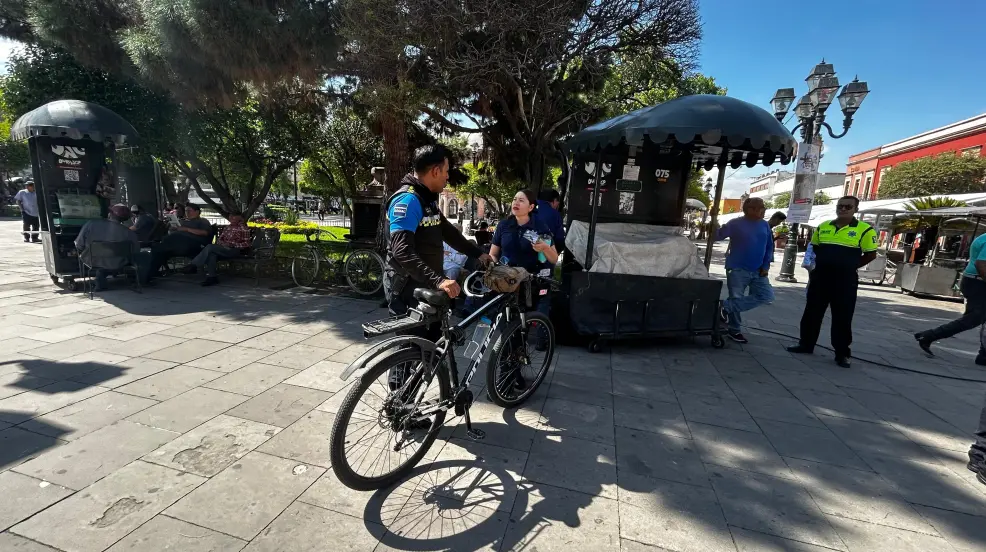 En las calles del centro de la ciudad, un grupo de uniformados se dirigieron a ciudadanos que por ahí transitaban, esto, primero, para informar sobre el uso correcto de las vialidades como peatones.