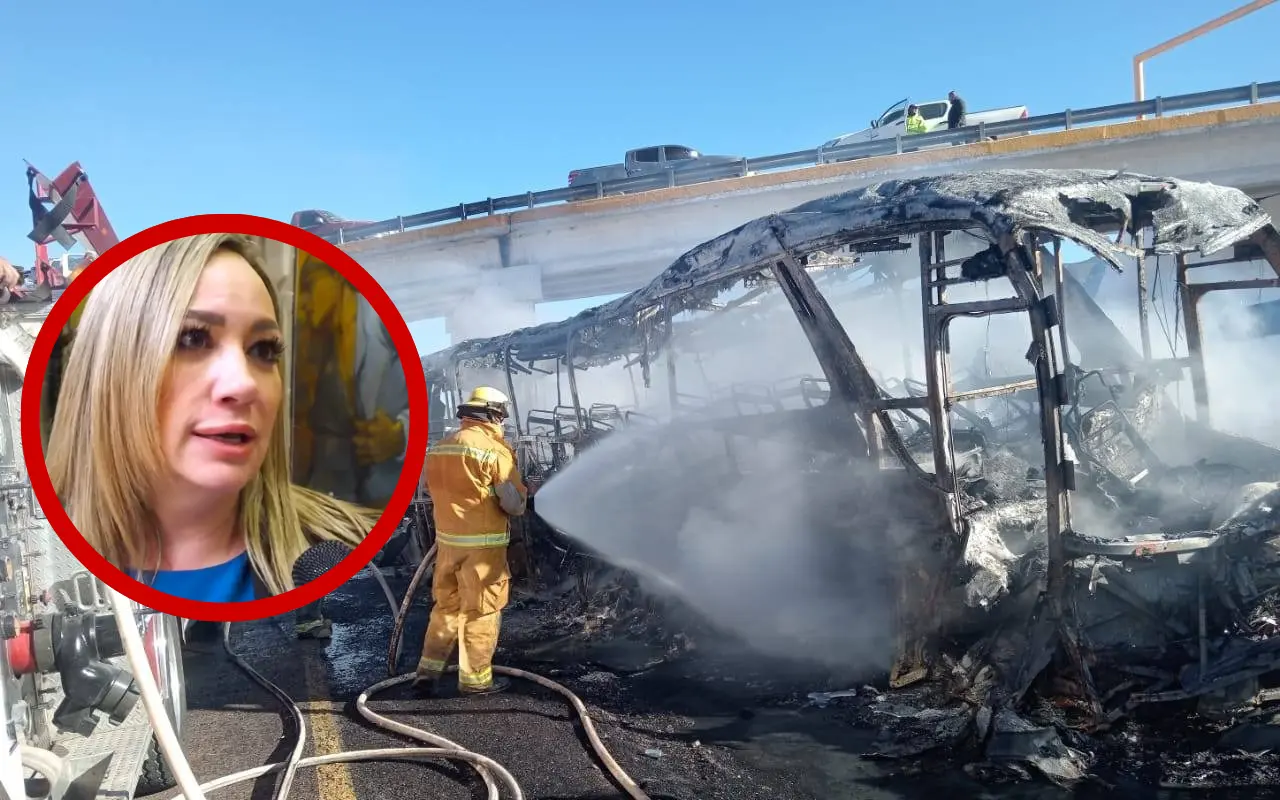 El accidente se registró cuando el camión de pasajeros chocó contra un tractocamión, perdiendo el control de la unidad el chofer, registrándose el incendio de la unidad.