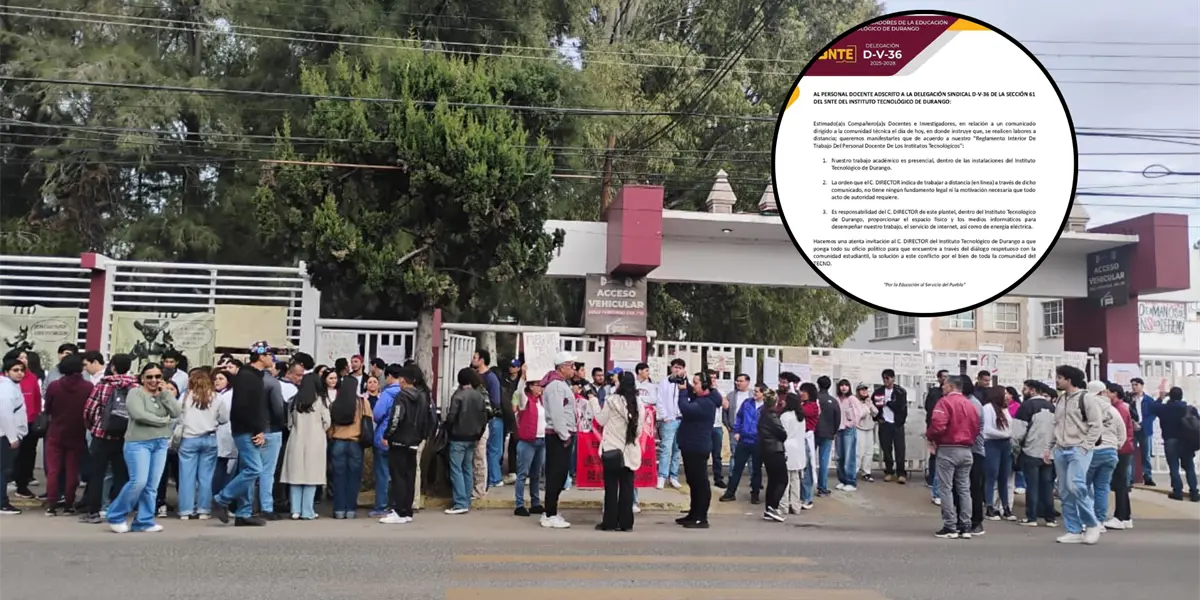 Maestros del Tecnológico de Durango se opusieron al anuncio realizado el 1 de diciembre por la noche en el que la Dirección de dicha institución anunciaba que, este martes 2, se reanudarían las clases en modalidad virtual ante la toma de sus instalaciones por parte de alumnos.