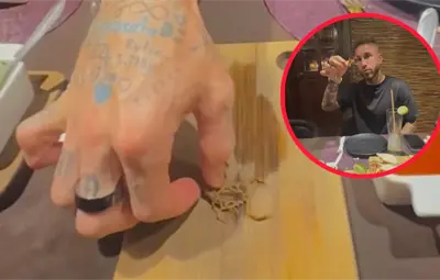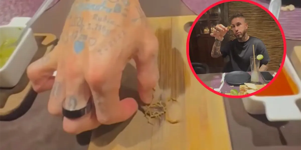 El futbolista español, Sergio Ramos, fue captado comiendo un alacrán de Durango.