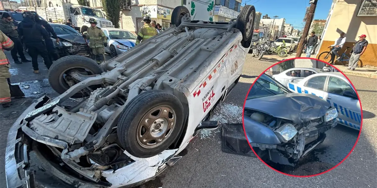 El conductor del taxi quedó atrapado en su vehículo tras haber volcado, por lo que fue auxiliado por la Dirección Municipal de Protección Civil y Bomberos.