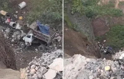 Las autoridades señalaron que el accidente se produjo cuando el conductor perdió el control de su unidad al acercarse al acantilado para depositar cascajo.