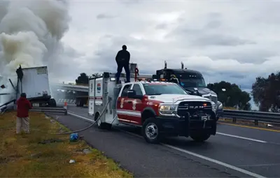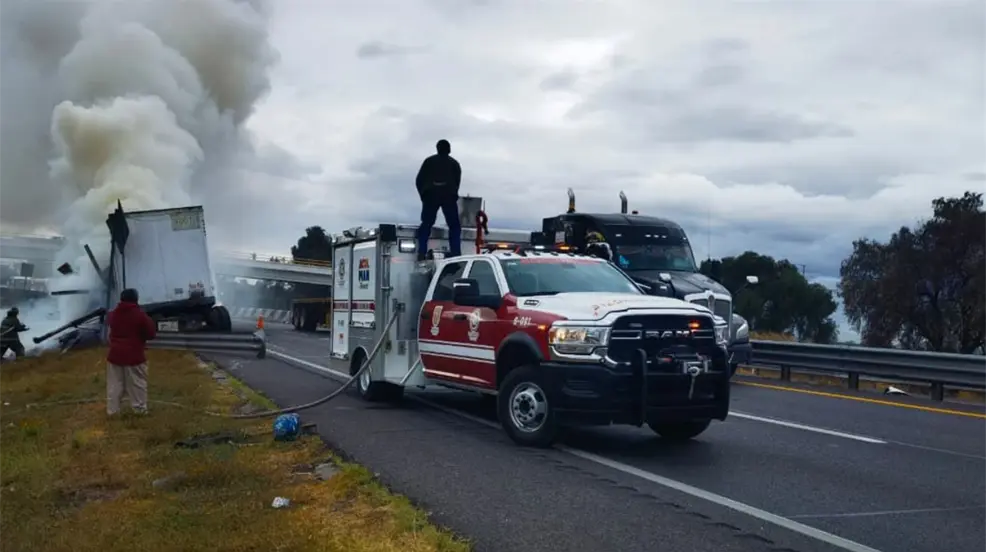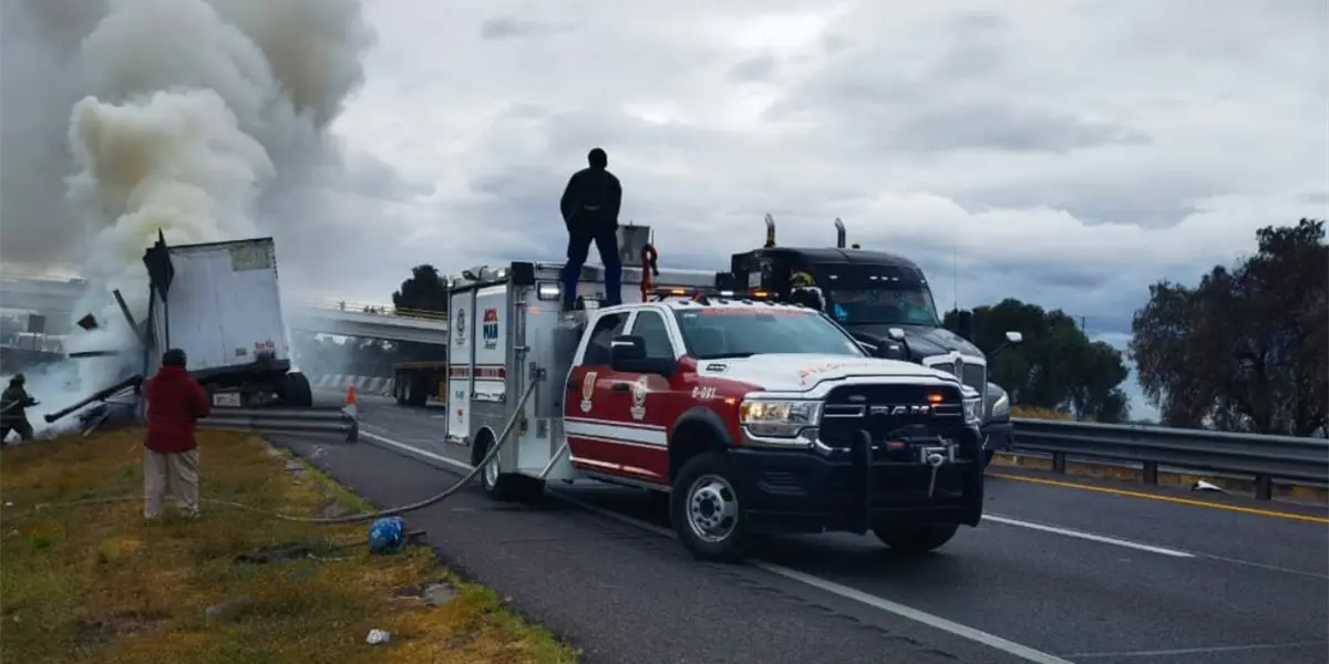 Accidente en la autopista Ecatepec-Pirámides: un tráiler se incendia y provoca el cierre de la circulación; no hay heridos.
