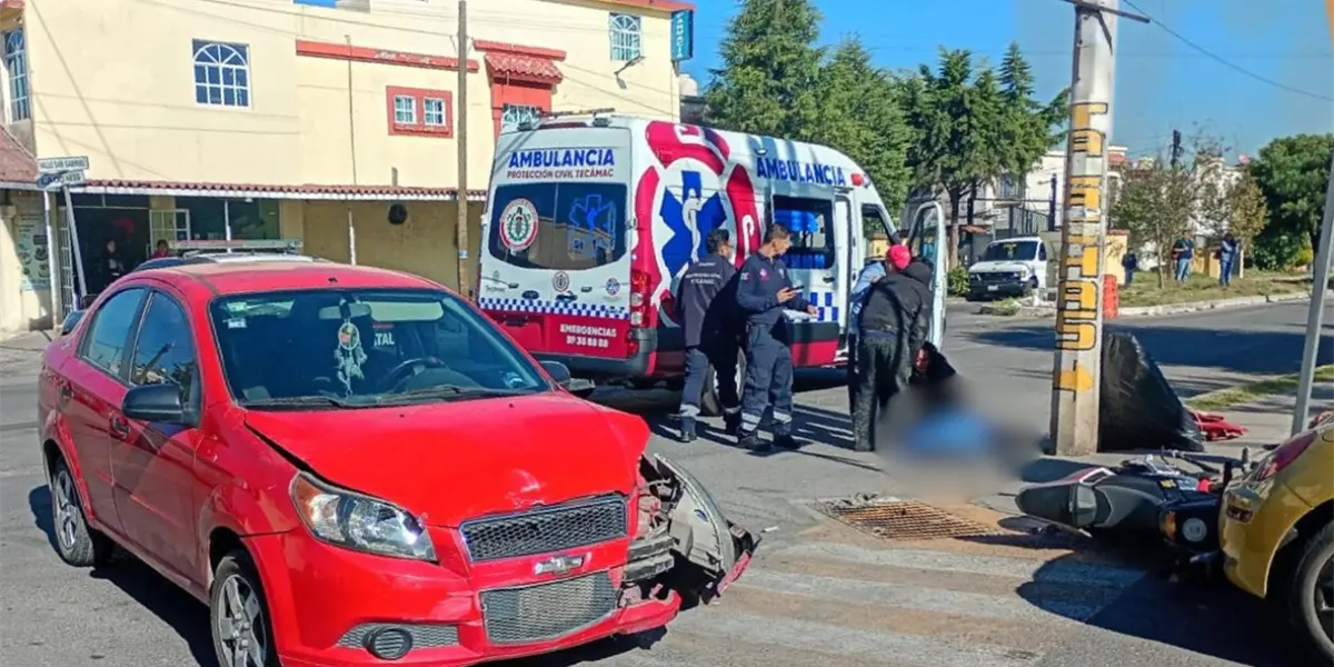 Un accidente vial en Edomex deja un menor sin vida; el joven viajaba como acompañante en una motocicleta sin equipo de protección cuando se impactó contra un automóvil.