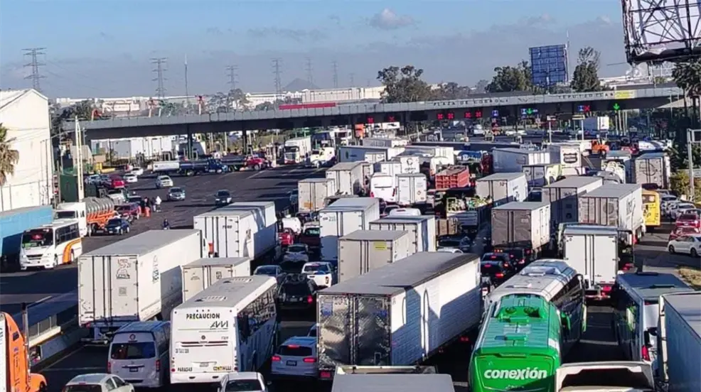 Transportistas bloquean la caseta de Tepotzotlán contra el operativo “Caudal” en Edomex