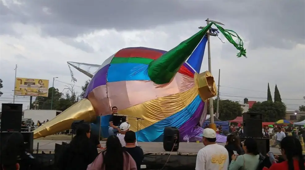 Apenas unas horas después de su presentación oficial, la enorme piñata instalada en Cuautitlán terminó en el suelo debido a las fuertes rachas de viento que se registraron en la zona, un desenlace inesperado para una obra que buscaba celebrar más de un siglo de tradición artesanal.