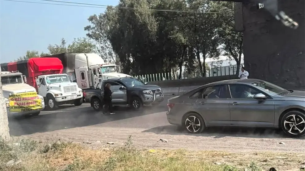 Ha sido desde cerca del mediodía que una caravana de camiones de carga ha bloqueado los carriles centrales pertenecientes a la autopista México-Querétaro con dirección a la Ciudad de México; sin embargo, se ha registrado un avance lento por la caravana de transportistas.