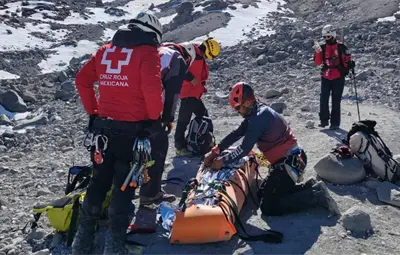 Cruz Roja del Estado de México llevó a cabo el rescate de una alpinista herida en Citlaltépetl; el incidente tuvo lugar en el glaciar Jamapa.