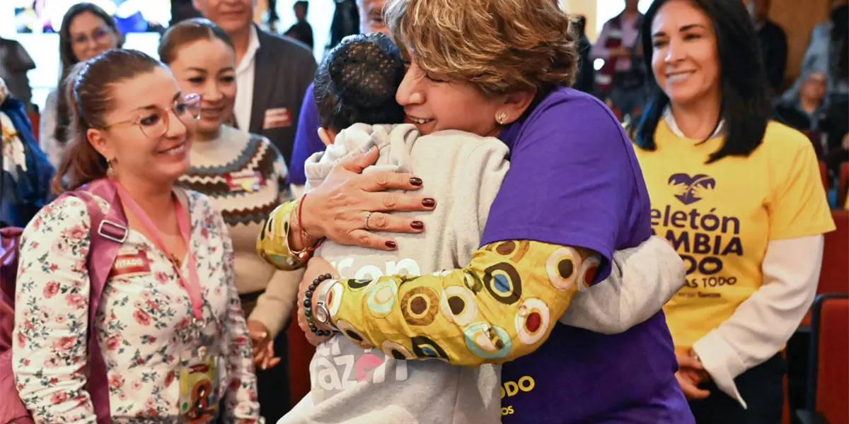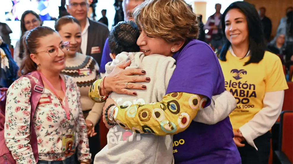 La gobernadora del Estado de México, Delfina Gómez Álvarez, entregó un donativo de 25 millones de pesos a la Fundación Teletón, recurso que será destinado a becas de rehabilitación integral para niñas, niños y adolescentes que acuden al CRIT Tlalnepantla y al Centro de Autismo Teletón de Ecatepec.