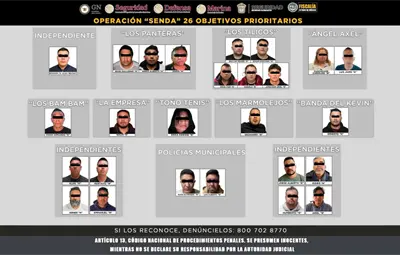 También se reportó la captura de Jesús Guillermo “N” y Mario Alberto “N”, principales integrantes de “Los Pantera”; Guadalupe Carolina “N” y Luis Jaime “N” de “Ángel Axel”; Ernesto “N” de la “Banda del Kevin”.