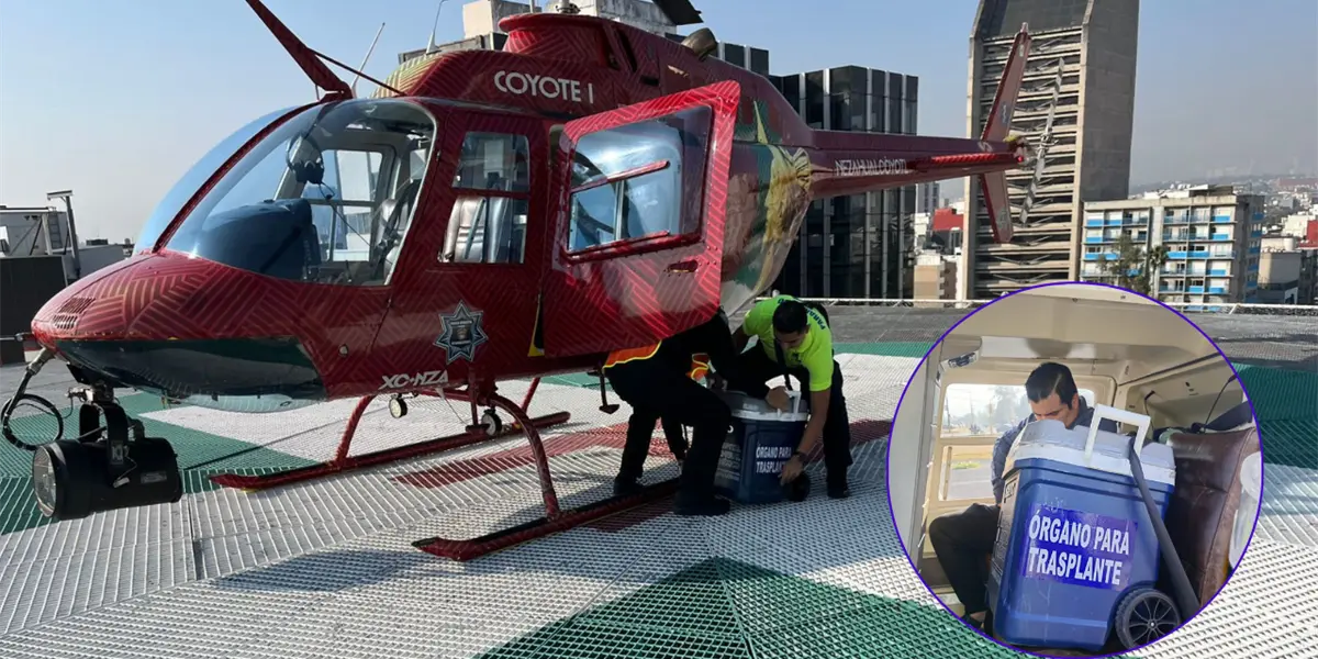 El helicóptero Coyote 1 realizó el traslado de órganos desde Texcoco al Hospital General de México; un operativo coordinado por la policía municipal del Edomex.