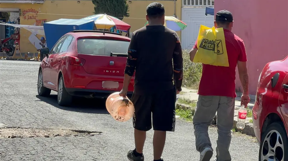 Uno de los vecinos afectados fue Erick, quien juntó con sus hermanos, caminaron por varias calles ubicadas en el municipio de La Paz, Estado de México, para buscar rellenar sus garrafones. “No tengo agua, pero aquí en la Purificadora del Mercado estuvieron echando, pero ya no alcanzamos. Fuimos, pero ya no alcanzamos agua”