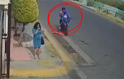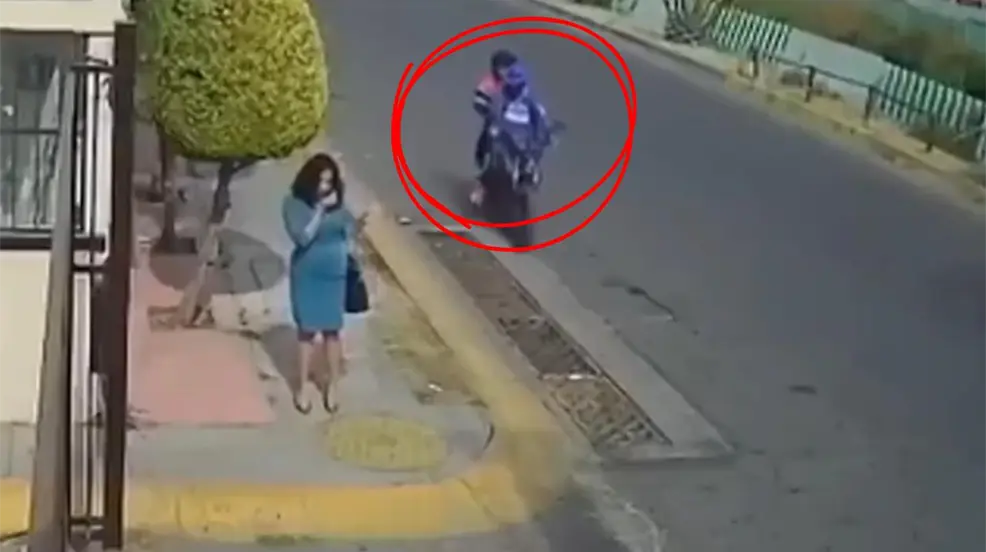 El segundo implicado la esperaba en una motocicleta negra; uno llevaba casco azul y el otro casco negro, permitiendo a ambos escapar rápidamente.