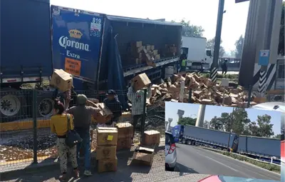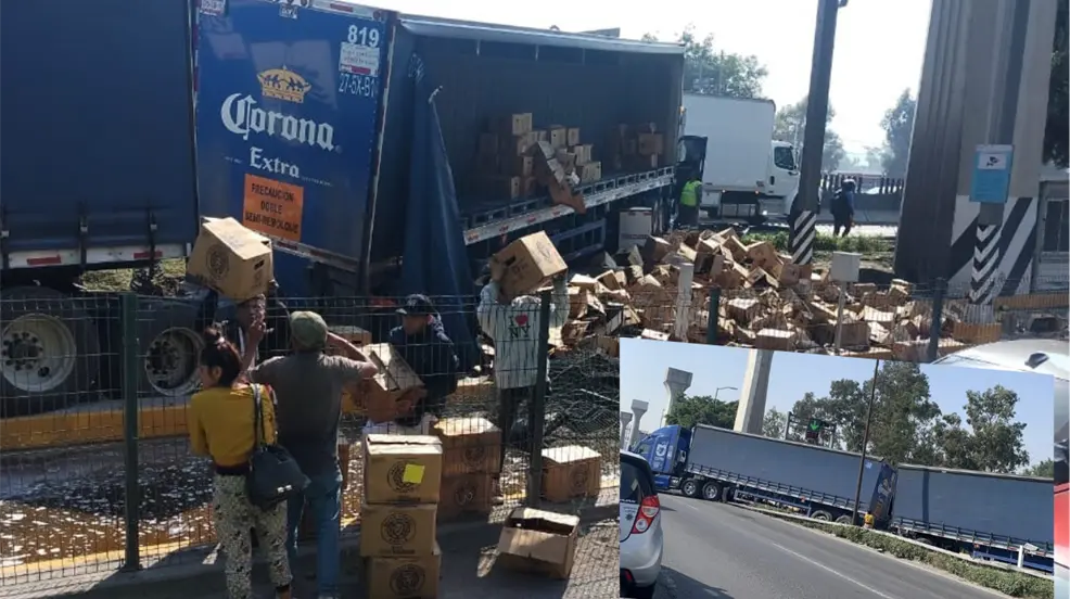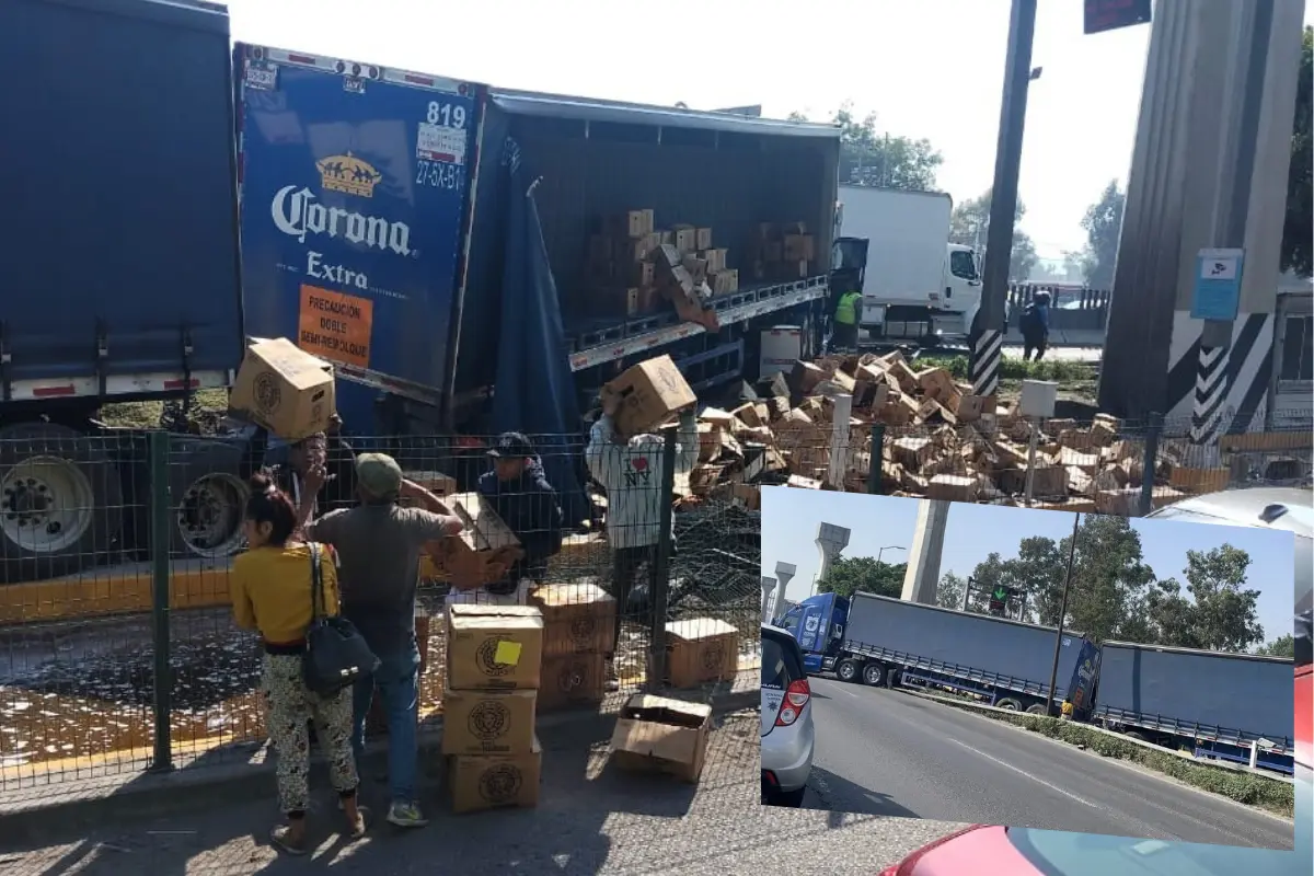 Tráfico en la México-Querétaro por tráiler de cerveza volcado a la altura de Cuautitlán