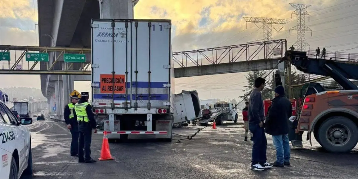 Tráiler se impacta contra base del Tren Interurbano en la autopista México-Toluca