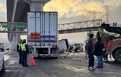 Tráiler colisiona contra base del Tren Interurbano en la autopista México-Toluca; personal técnico evalúa la estructura.