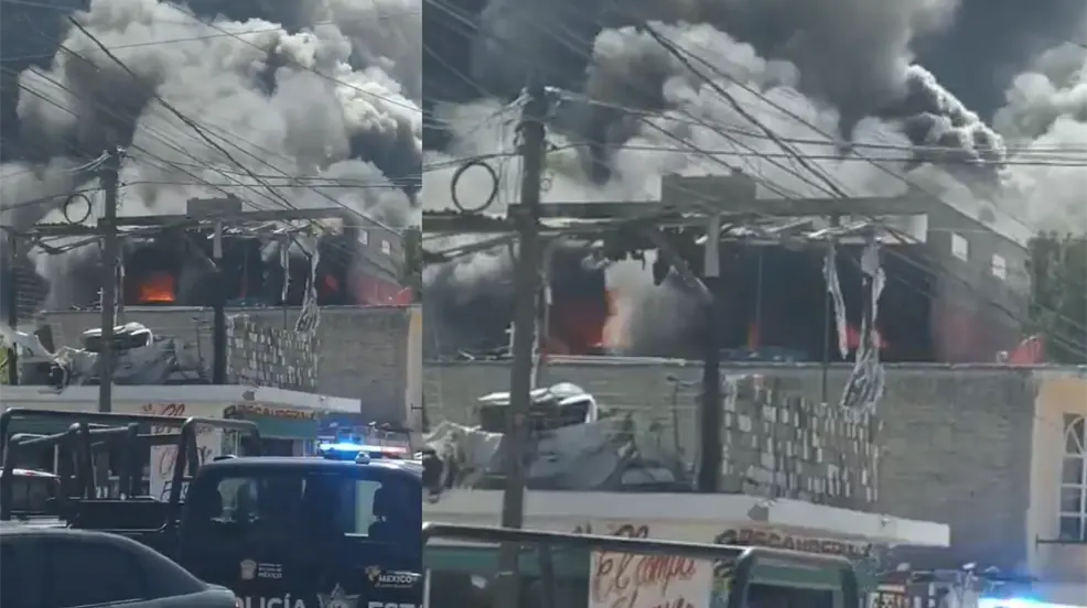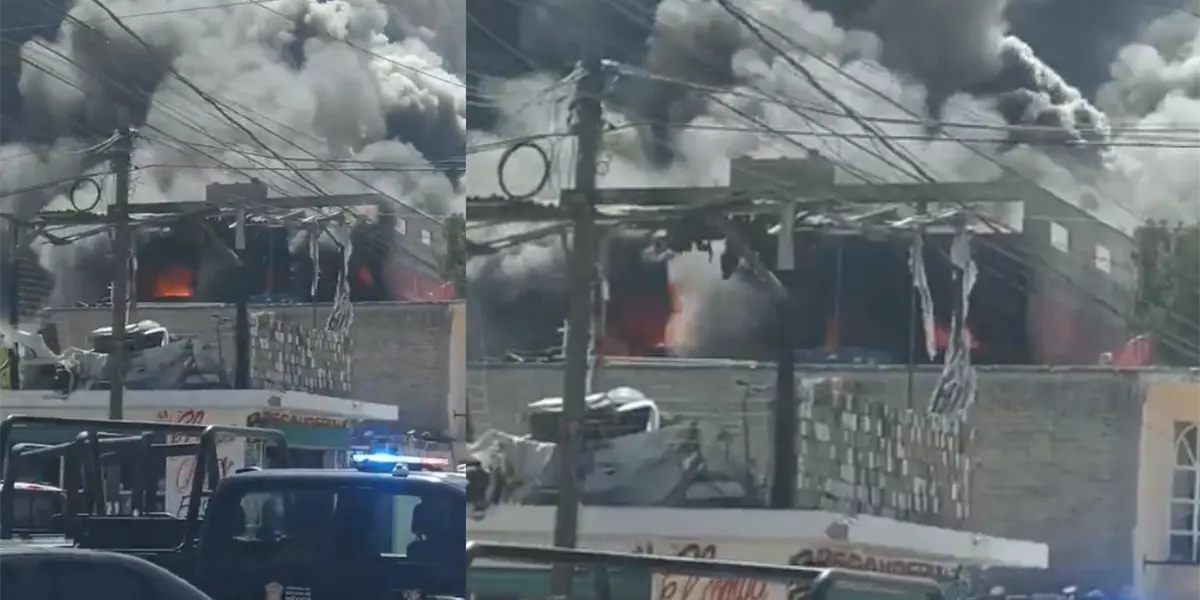 Alrededor del mediodía se reportó un incendio en un edificio que funcionaba como bodega de espumas y colchones, ubicado en la colonia Hank González, en Ecatepec de Morelos, Estado de México.