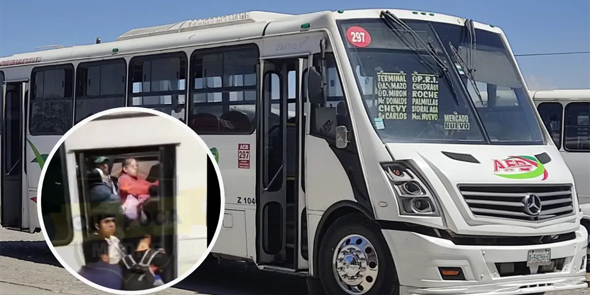 VIDEO | Pasajeros cuelgan de la puerta de una micro en Toluca y causan indignación en redes