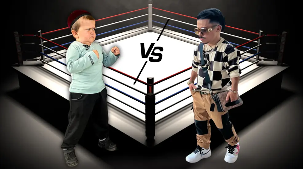Con un "abrazo y agarrón de cachetes" como cierre, el video ha generado campañas de fans para una pelea de boxeo, mientras Abelito, de 1.14 m, saca ventaja de estatura sobre Hasbulla (1.02 m).
