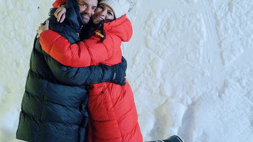 Me acuerdo haber visto a mucha gente de producción y de repente lo veo a él, me llamó la atención. Me voy acercando y lo vi guapísimo. Yo lo viví en cámara lenta. Nos sonreímos los dos, algo pasó, había estrellitas alrededor. Cuando lo saludo, nos abrazábamos. No sé si ese abrazo duró 30 segundos o tres minutos, pero no nos podíamos soltar.