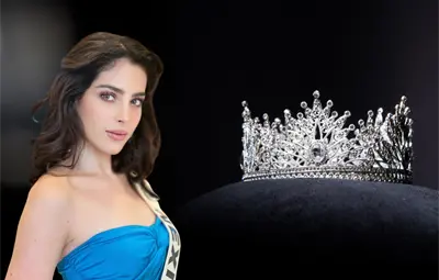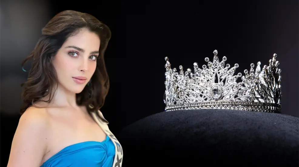 Fátima Bosch junto a una corona de reina de belleza (Foto: IG @fatimaboschfdz / Canva)