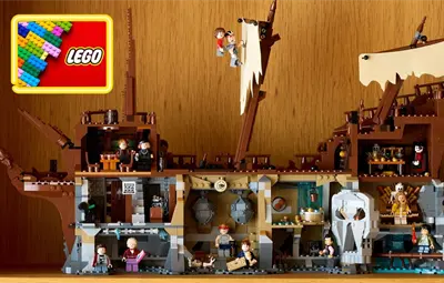 Este set coleccionable presenta recreaciones de escenas memorables construidas con bloques de Lego, desde el escondite y las cuevas de los Fratellis, hasta la legendaria sala del tesoro de Willy el Tuerto.