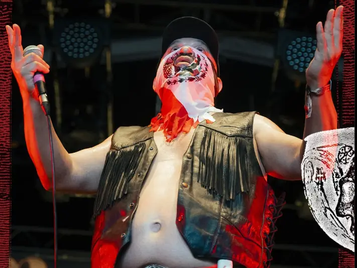 El cantante siempre lucía un paliacate, generalmente con la bandera de México, así como un machete y una gorra con el nombre de la agrupación.