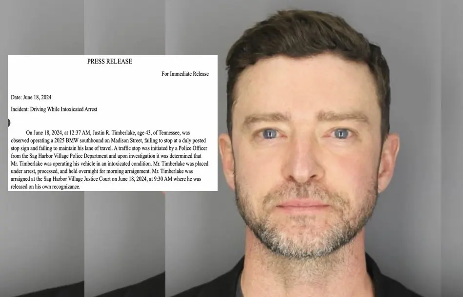 Según informó el Departamento de Policía, Timberlake se saltó una señal de alto y no lograba mantenerse en su carril, por lo que fue arrestado tras salir de una cena con amigos.