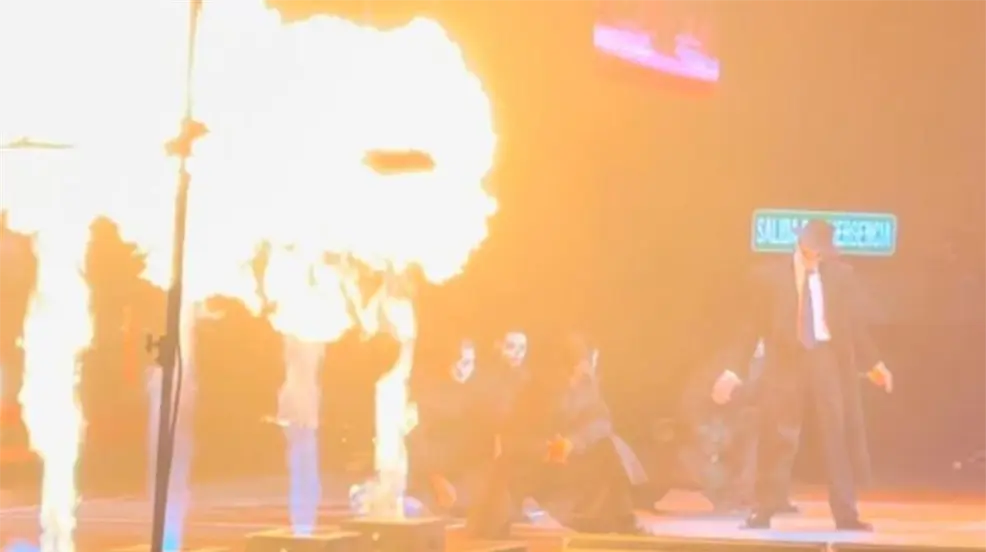 El también bailarín puertorriqueño montó en el primer acto de su show "Cosa Nuestra" una verdadera escena de película que muestra una ejecución muy similar a las del Chicago antiguo de mediados del siglo pasado, a partir de ahí nos narra una historia de amor llena de teatralidad.