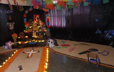 El Jardín de Niños Amadeus Mozart ubicado al sur de Monterrey dedicó este año su altar de muertos a la llamada "Reina del Tex-Mex"