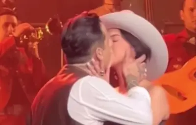 "Te amo", se lee en los labios de Christian Nodal decirle a la hija de Pepe Aguilar, después de haberla besado, ella, por su parte, responde con una gran sonrisa despidiéndose así de él del escenario. Previo a este momento, el sonorense le cantó a su nueva pareja el tema "Por mujeres como tu", un clásico en la voz de Pepe Aguilar, papá de Ángela.