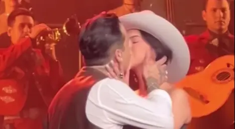 ¡Sin pena! Ángela Aguilar y Christian Nodal se besan en pleno concierto (VIDEO)