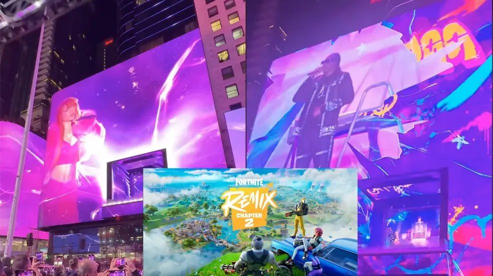 NUEVA YORK, Estados Unidos.- Fortnite volvió a captar la atención del mundo con el estreno de Fortnite Chapter 2 Remix, una nueva temporada cargada de novedades que se inauguró con un espectacular evento en Times Square, Nueva York.