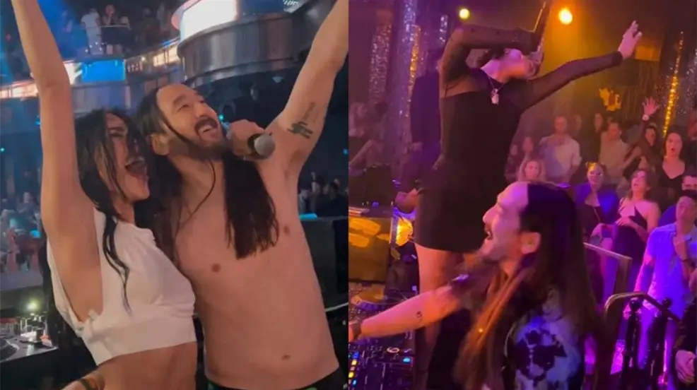 La fiesta que se armó entre Danna Paola y el DJ Steve Aoki fue en un centro nocturno de Las Vegas, donde también estuvo Ángela Aguilar.