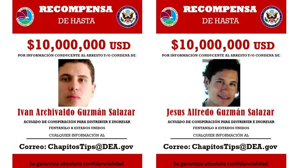 La DEA actualizó su lista de los 10 fugitivos más buscados y la misma es encabezada por 'Los Chapitos”, mientras que “El Mayo” Zambada y “El Mencho” ya no figuran.