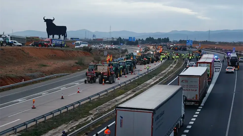 MADRID, España.- En el conexo de las recientes protestas de agricultores en Europa, las cuales se han extendido por Francia, Portugal e Italia, ahora se han sumado los agricultores de España, los cuales, este martes 6 de febrero, han llamado a bloquear carreteras y accesos a ciudades, como protesta por las políticas agrarias de la Unión Europea y exigir mejoras en lo referente al campo.