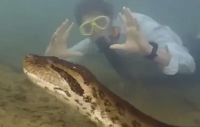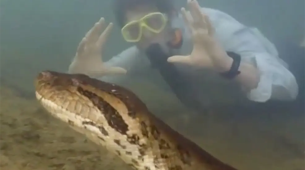 BRASIL.- Un grupo de científicos de National Geographic se adentraron en las aguas de un lago de la selva amazónica para rodar escenas de un documental, pero se encontraron con una sorpresa inesperada: una anaconda gigante de casi ocho metros de largo y cerca de 200 kilos de peso.