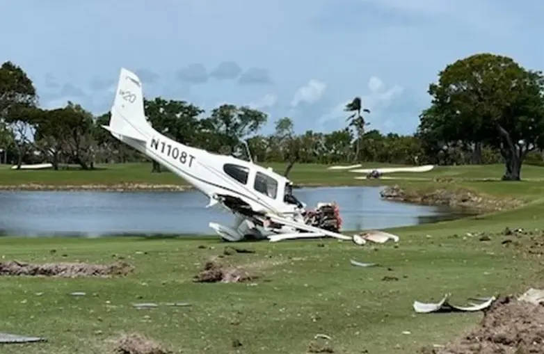 Avioneta se estrella en campo de golf en comunidad de los Cayos de la Florida