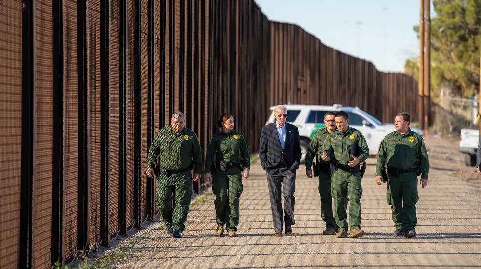Biden, acompañado del secretario de Seguridad Nacional, Alejandro Mayorkas, se reunió con agentes de la Patrulla Fronteriza y observó una serie de demostraciones de tácticas que utilizan las autoridades para requisar personas y vehículos en el paso fronterizo.