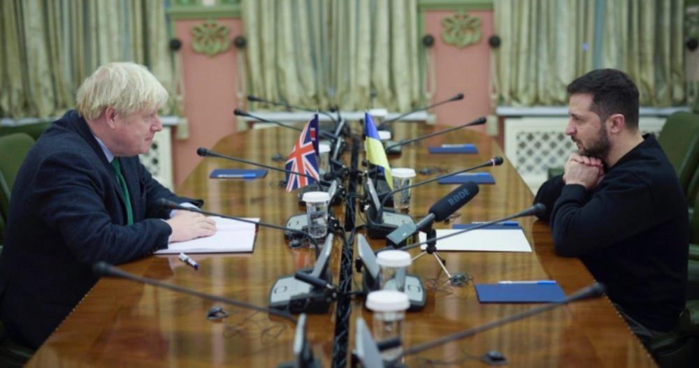 El ex primer ministro, Boris Johnson viajó a Kyiv para mostrar su respaldo al presidente de Ucrania, Volodimir Zelenskyy