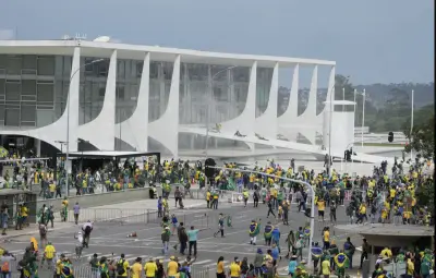 Alborotadores vestidos con los colores verde y amarillo de la bandera nacional rompieron ventanas, derribaron muebles y arrojaron computadoras e impresoras al suelo. Agujerearon en cinco puntos un enorme cuadro de Emiliano Di Cavalcanti, volcaron la mesa con forma de U donde se reúnen los jueces del Supremo Tribunal Federal, arrancaron la puerta del despacho de un juez y vandalizaron una emblemática estatua ante la corte. Los interiores de los edificios monumentales quedaron en estado de ruina.