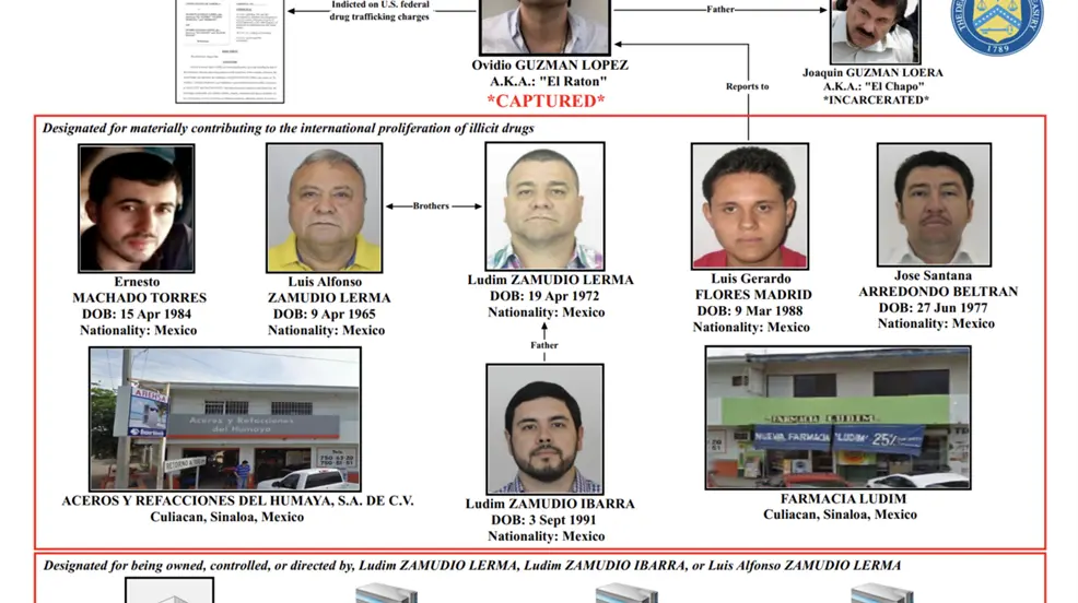La Oficina de Control de Activos Extranjeros (OFAC, por sus siglas en inglés), del Departamento del Tesoro de Estados Unidos, consideró que la red de la que forman parte, liderada por dos de los sancionados este día, los hermanos Ludim y Luis Alfonso Zamudio Lerma, es responsable de enviar sustancias químicas ilícitas directamente a miembros del Cártel de Sinaloa y operadores de laboratorio.