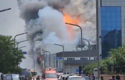 El siniestro movilizó a decenas de camiones de bomberos para evitar que las llamas se expandieran a otras fábricas cercanas, en imágenes en redes sociales muestran enormes columnas de humo gris y llamas naranjas en el interior del edificio.