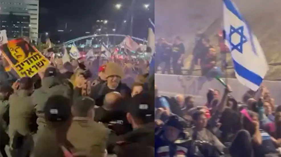Mientras los manifestantes piden un acuerdo para la liberación de los rehenes, la policía israelí reprimió a los inconformes utilizando un cañón de agua.