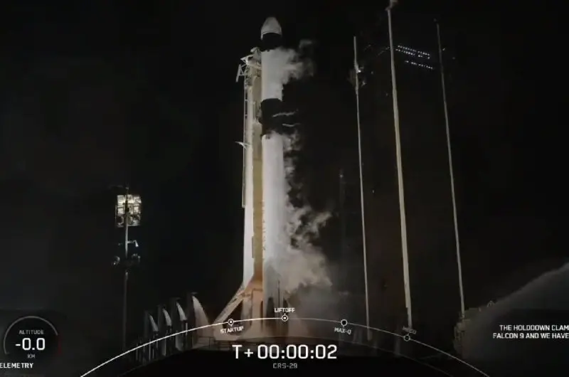 El despegue de la misión no tripulada CRS-29 tuvo lugar desde el Complejo de Lanzamiento 39A del Centro Espacial Kennedy, ubicado en Cabo Cañaveral, en el centro de Florida.