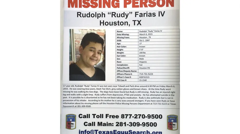 HOUSTON, Texas.- En una sorprendente noticia, Rudolph “Rudy” Farias IV, un joven de Texas que desapareció en 2015 cuando aún era adolescente, ha sido encontrado con vida después de 8 años.