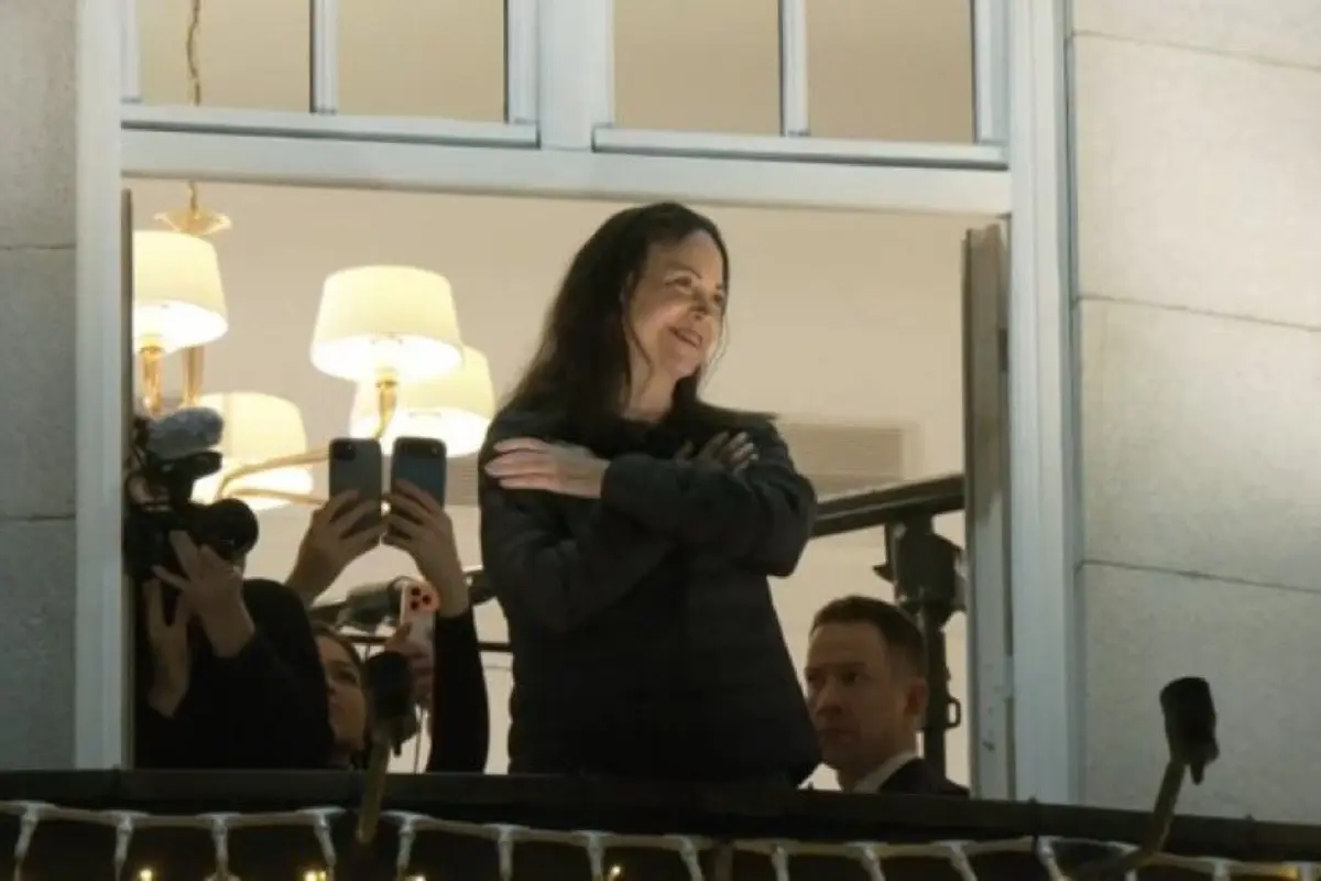 La ganadora del Premio Nobel de la Paz, María Corina Machado, reapareció públicamente en el balcón del Grand Hotel de Oslo.