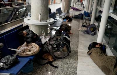 Medios locales difundieron imágenes en las que se puede observar a varias personas sin hogar instaladas con mantas en los asientos situados en las afueras del estación aérea.